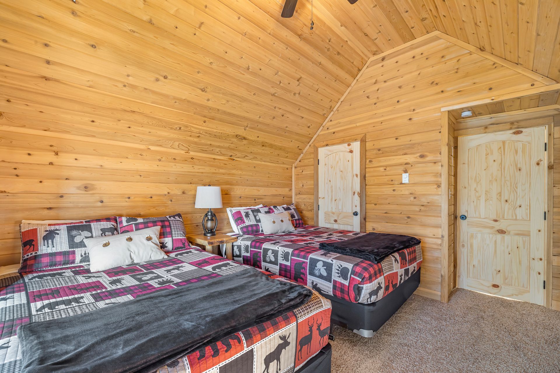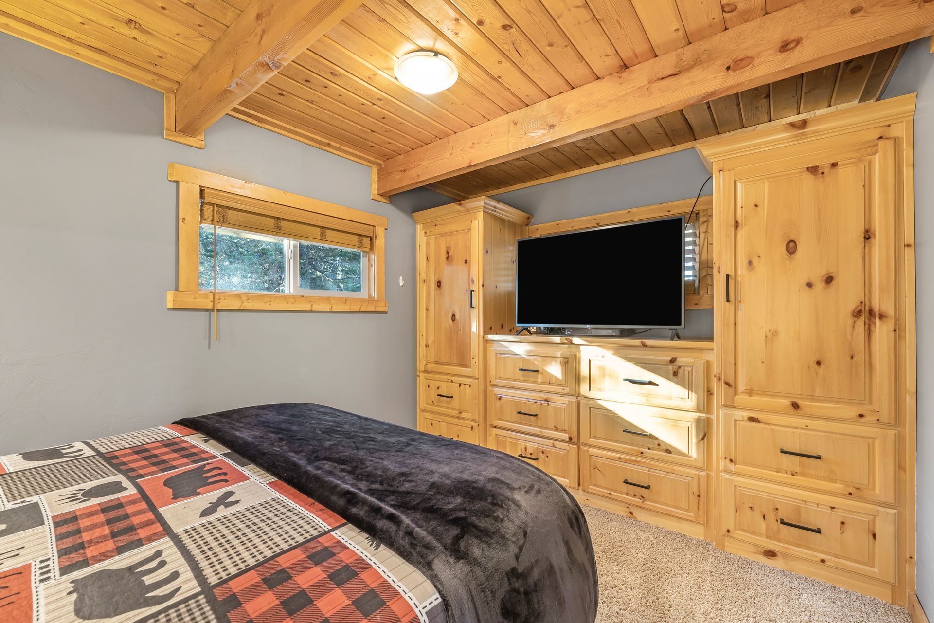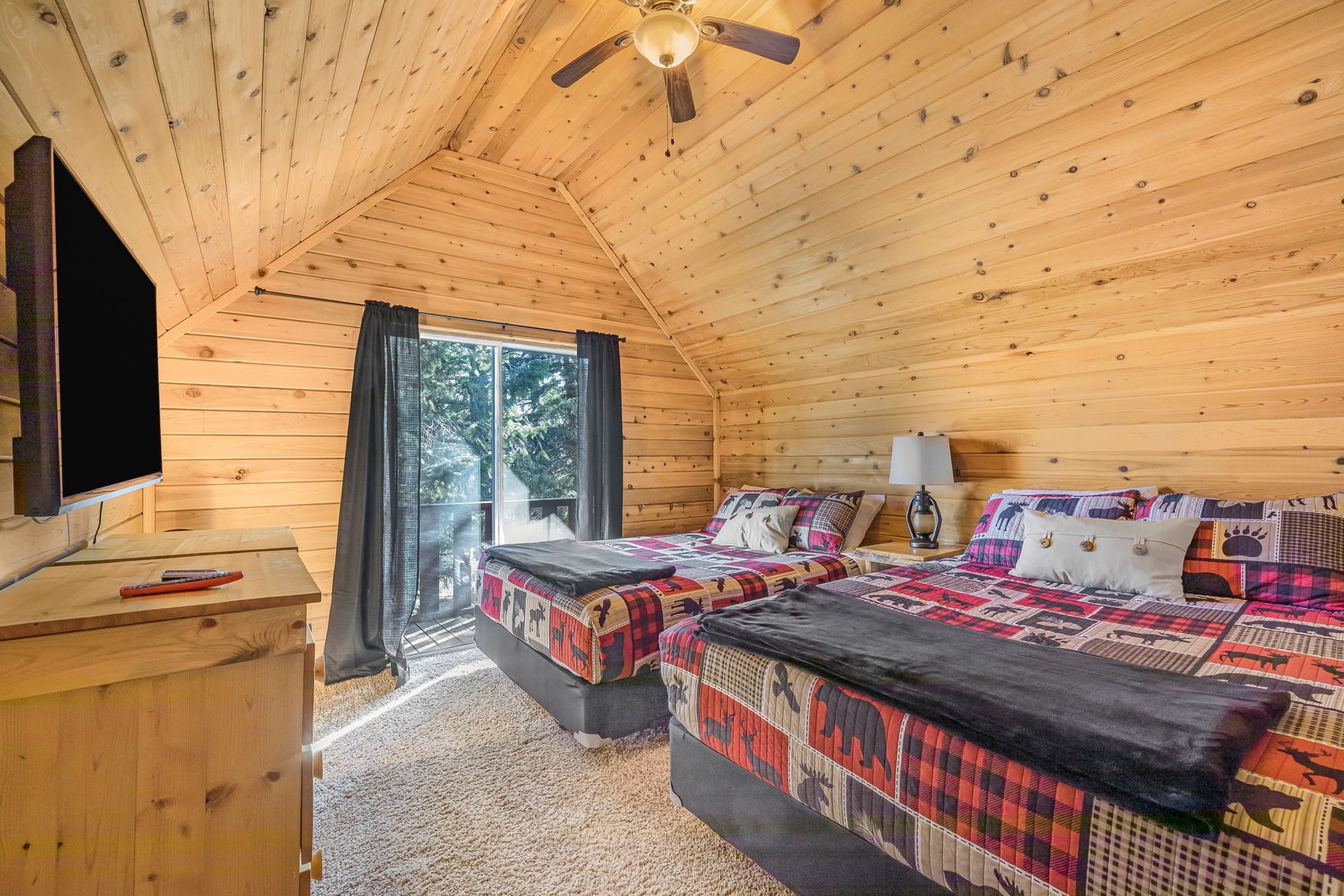 Enjoy your getaway w/ this cozy cabin. Has 3 bedrooms: 1st room with a single queen, 2nd w/ 2 queens and 3rd w/ 2 bunk beds. 2 full bathrooms, and a laundry set up for use. Large fully stocked kitchen w/ all the amenities you need to cook any meal.