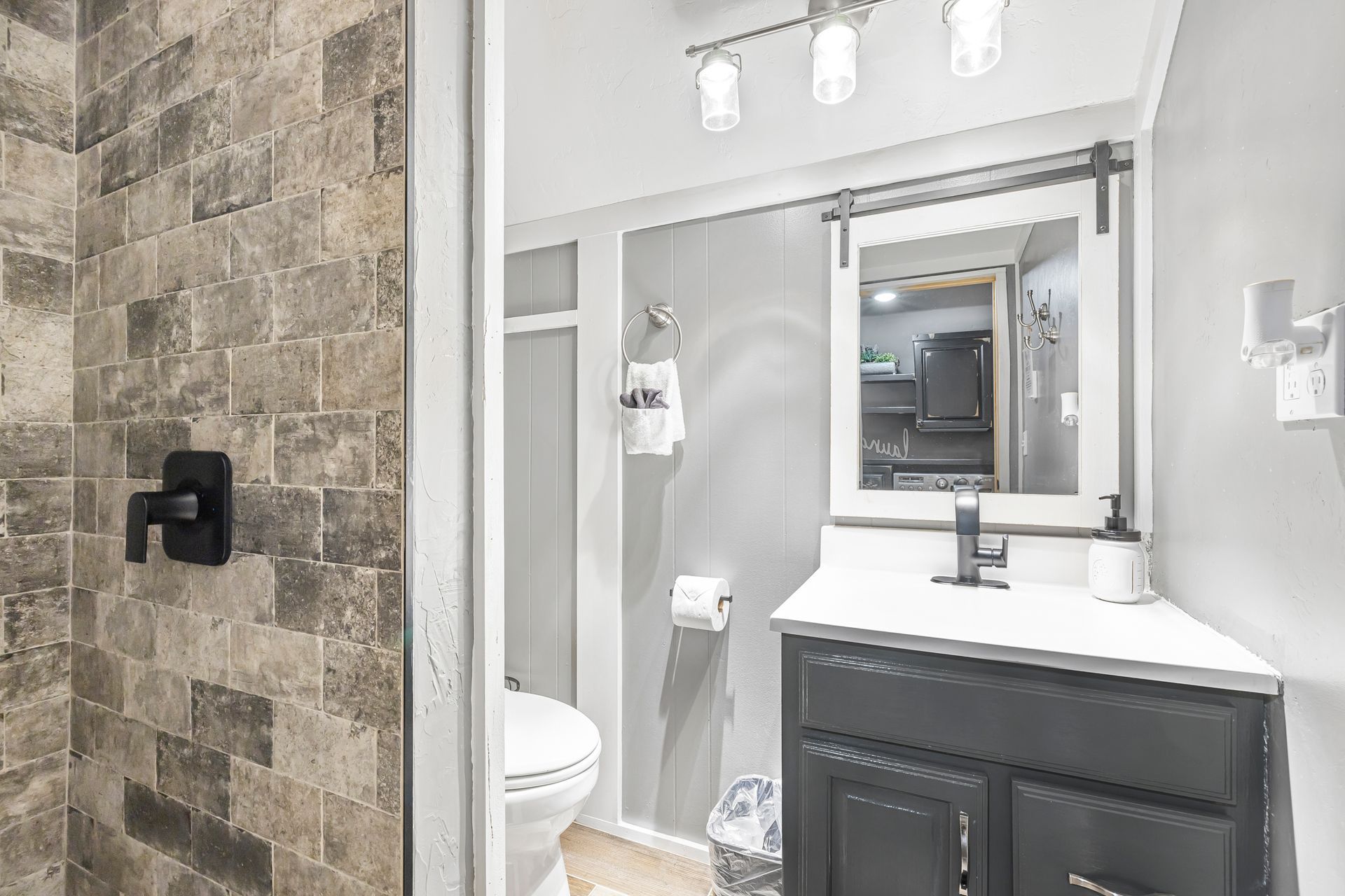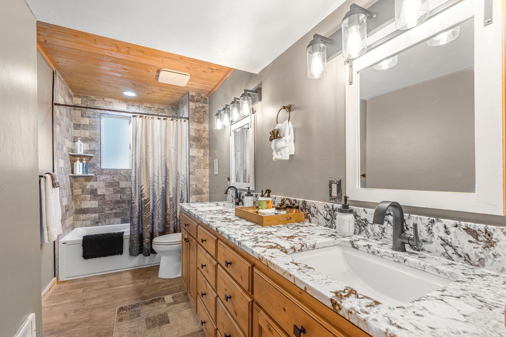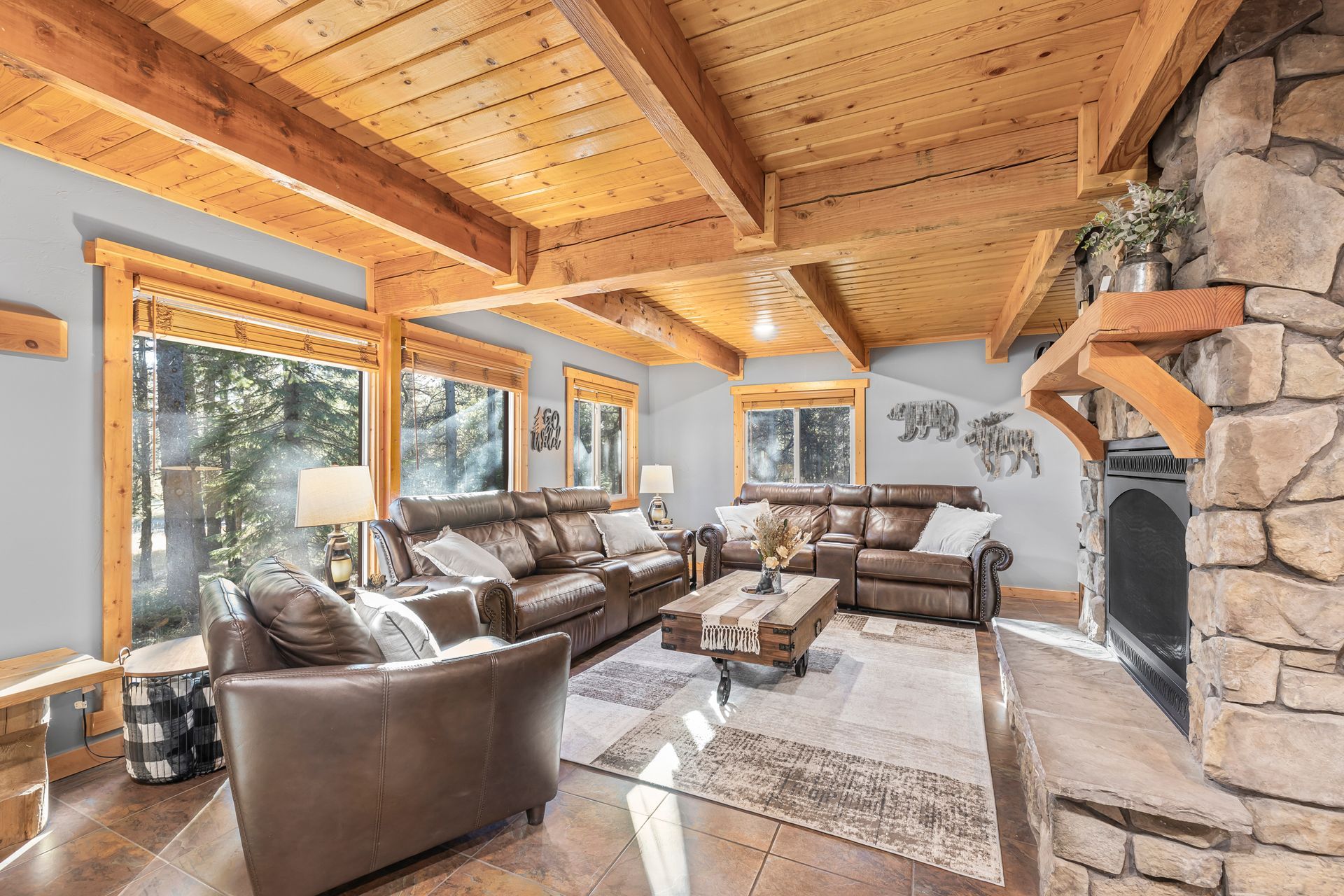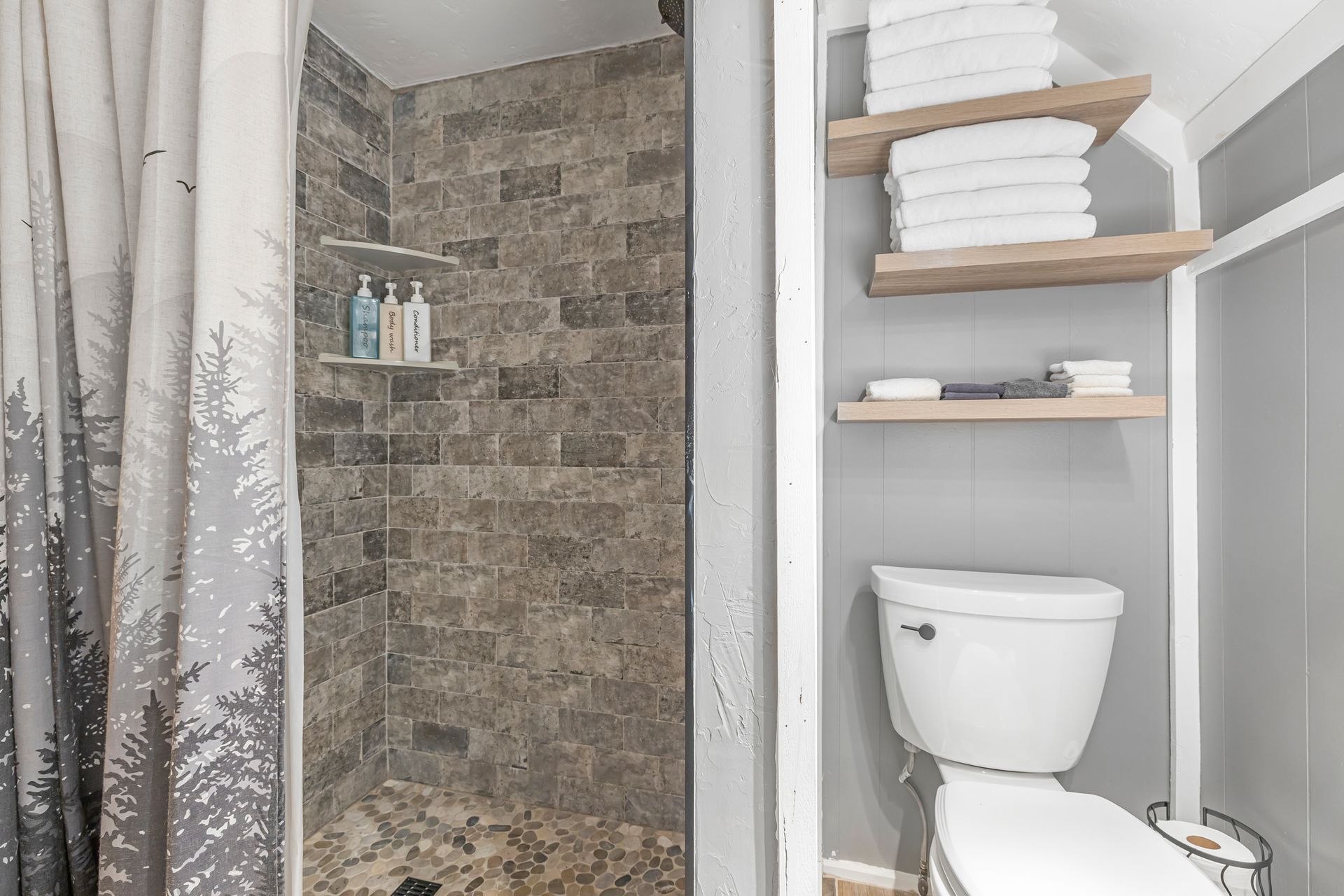 Enjoy your getaway w/ this cozy cabin. Has 3 bedrooms: 1st room with a single queen, 2nd w/ 2 queens and 3rd w/ 2 bunk beds. 2 full bathrooms, and a laundry set up for use. Large fully stocked kitchen w/ all the amenities you need to cook any meal.
