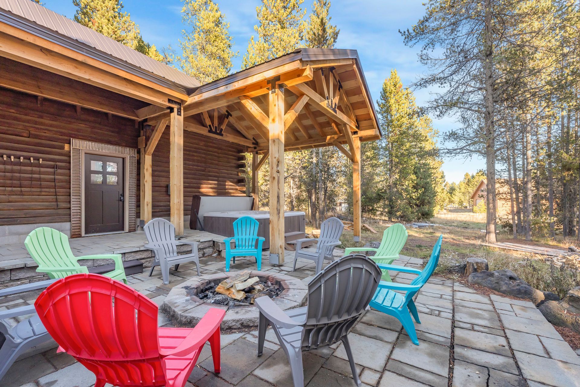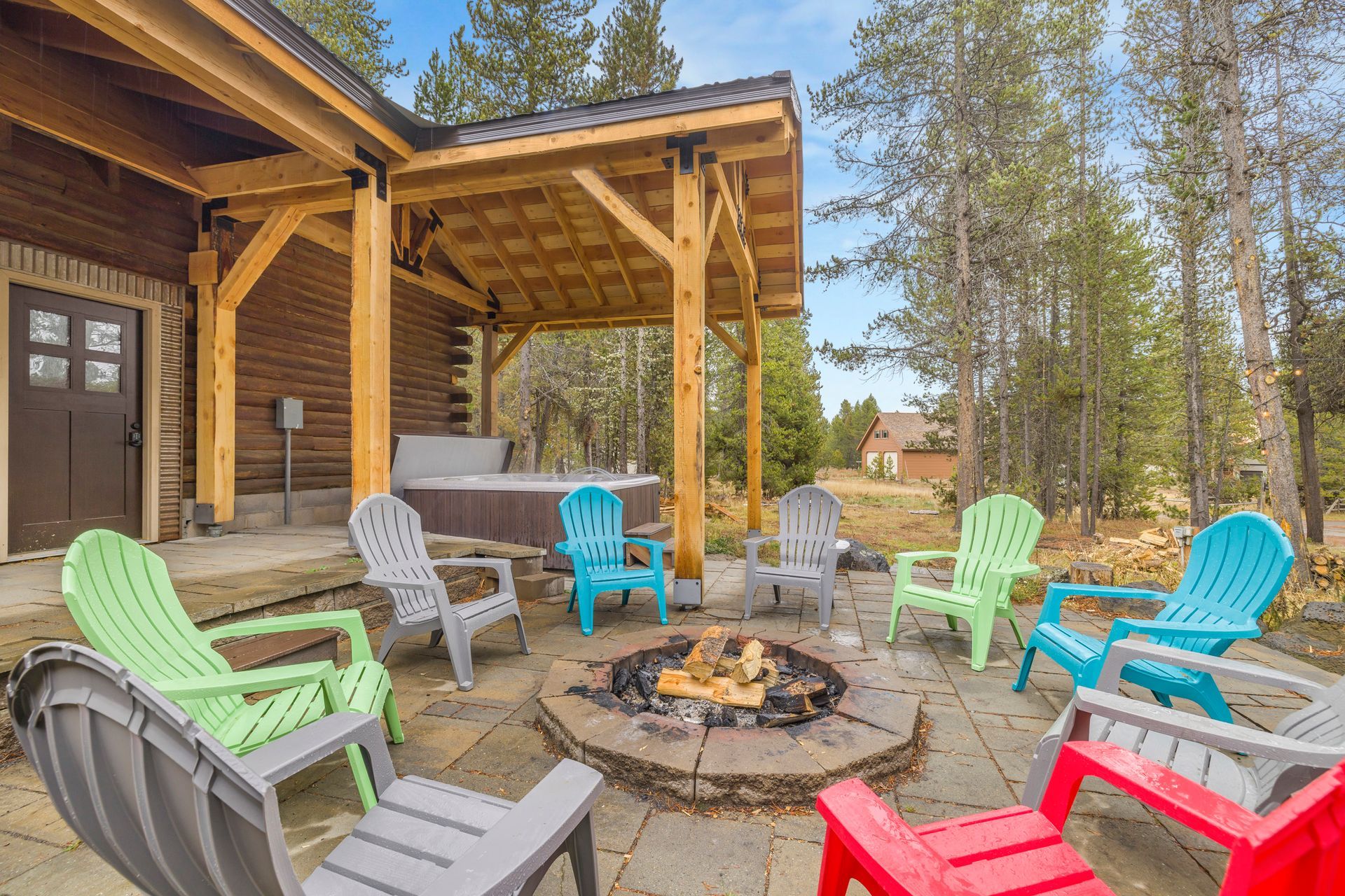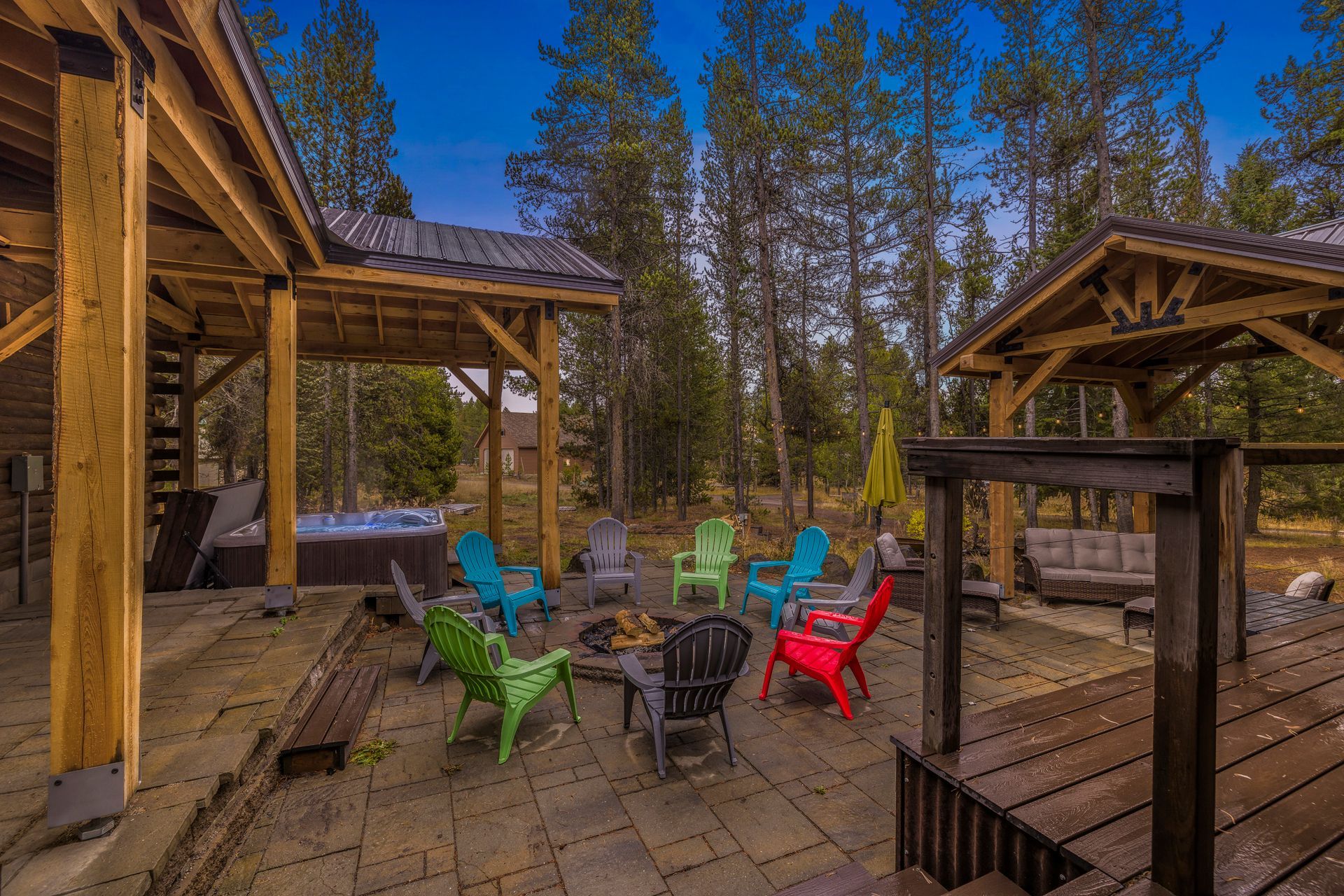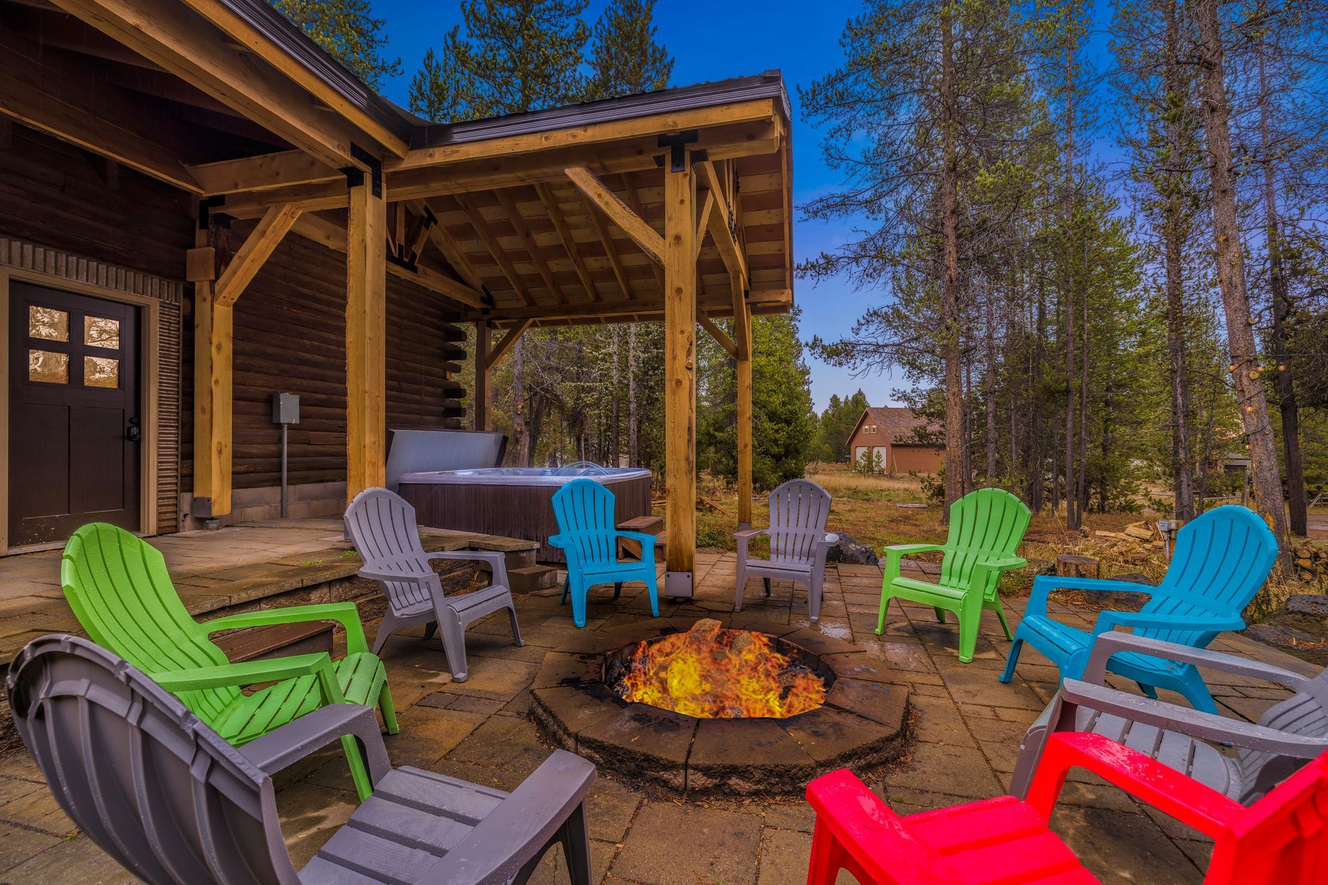 Enjoy the outdoor area for relaxing fires or a soak in the hot tub in its all natural landscaping. Surrounded with outdoor lighting and pine trees.