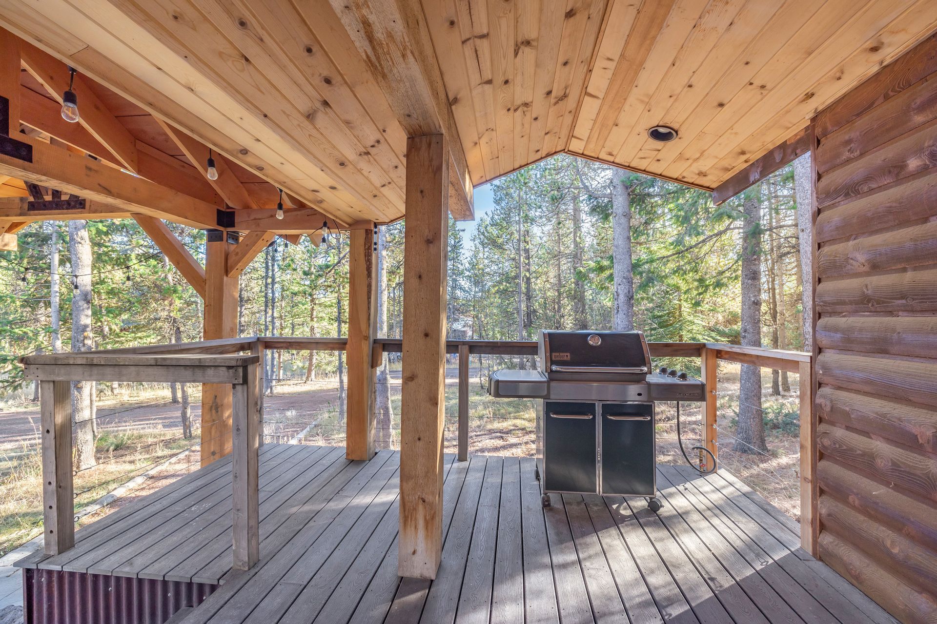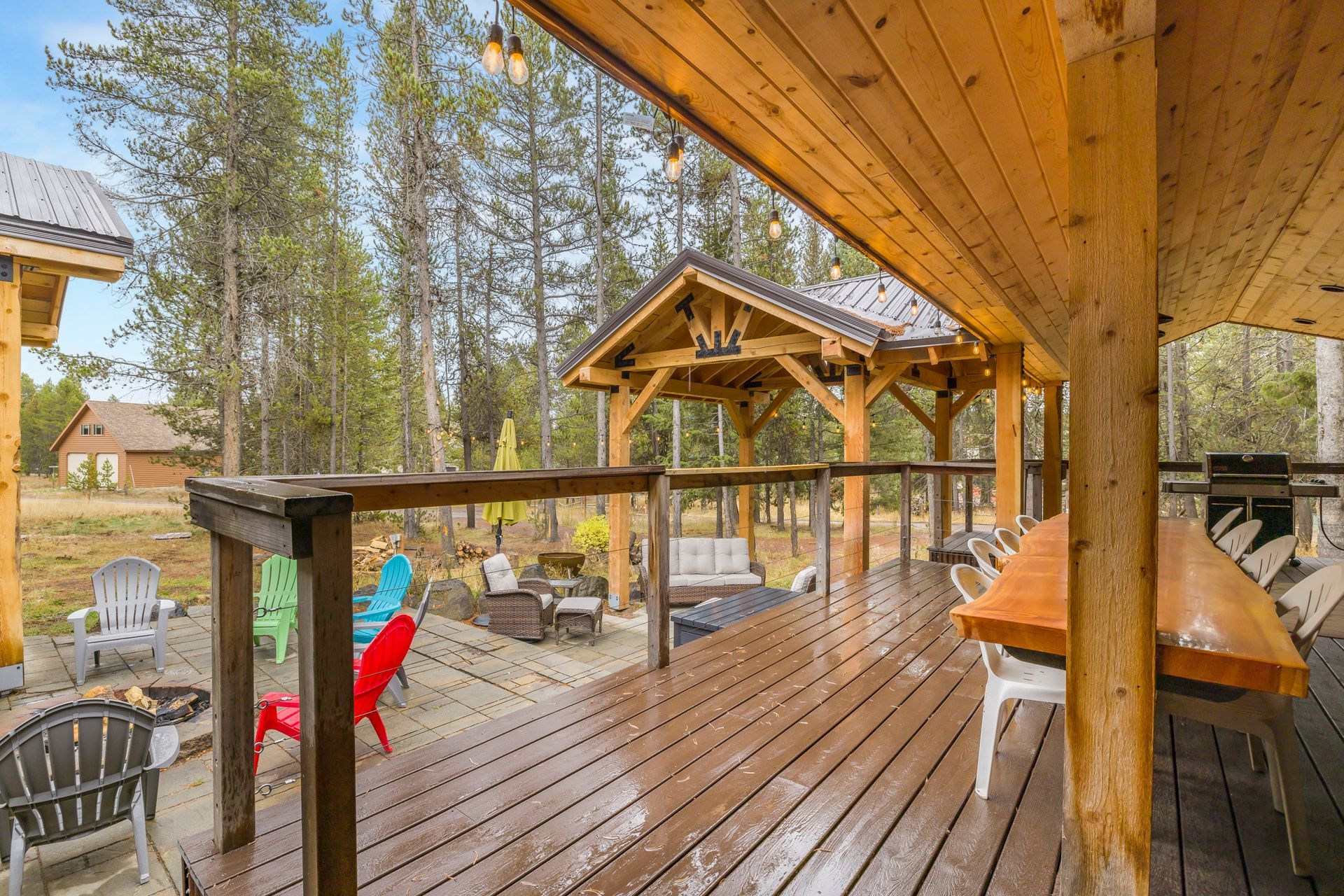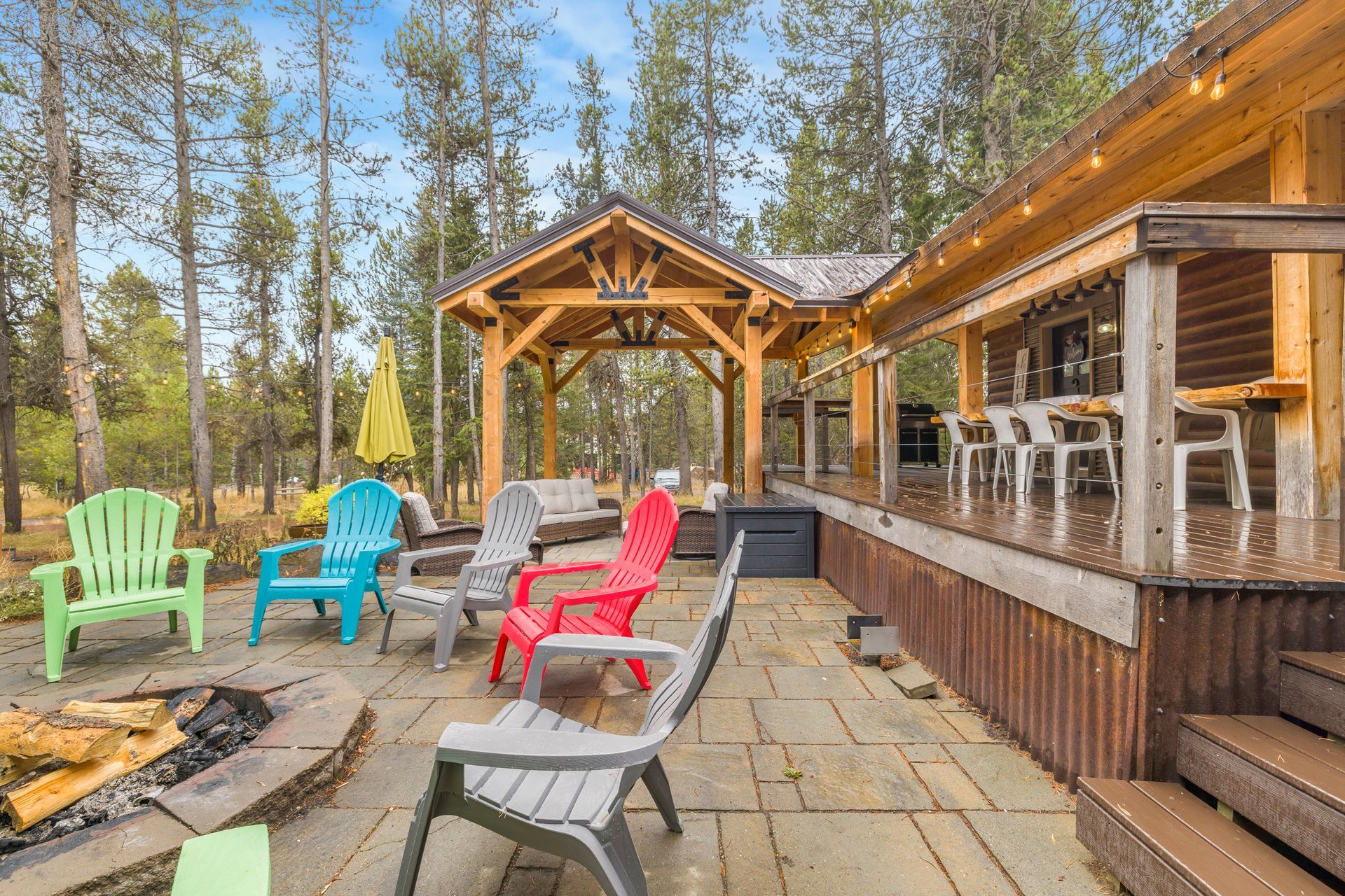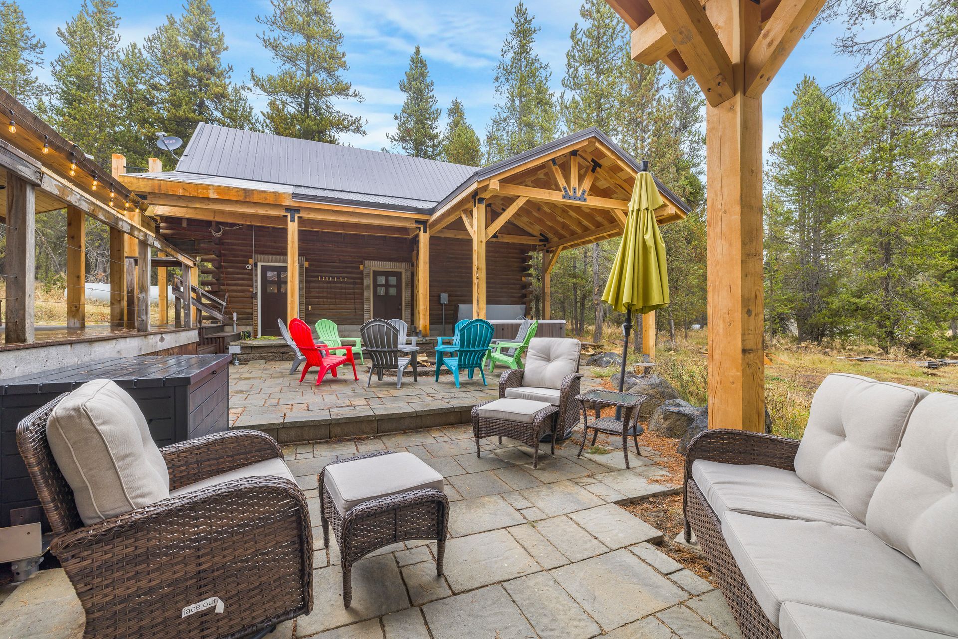 Enjoy the outdoor area for relaxing fires or a soak in the hot tub in its all natural landscaping. Surrounded with outdoor lighting and pine trees.